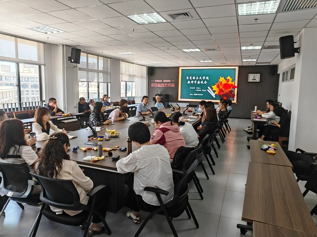 在教7-514室召开庆祝第41个教师节座谈会,座谈主题为“凝聚师者力量,共话改革发展”。中文字幕av班子成员、教研部主任和教师代表参加座谈。
