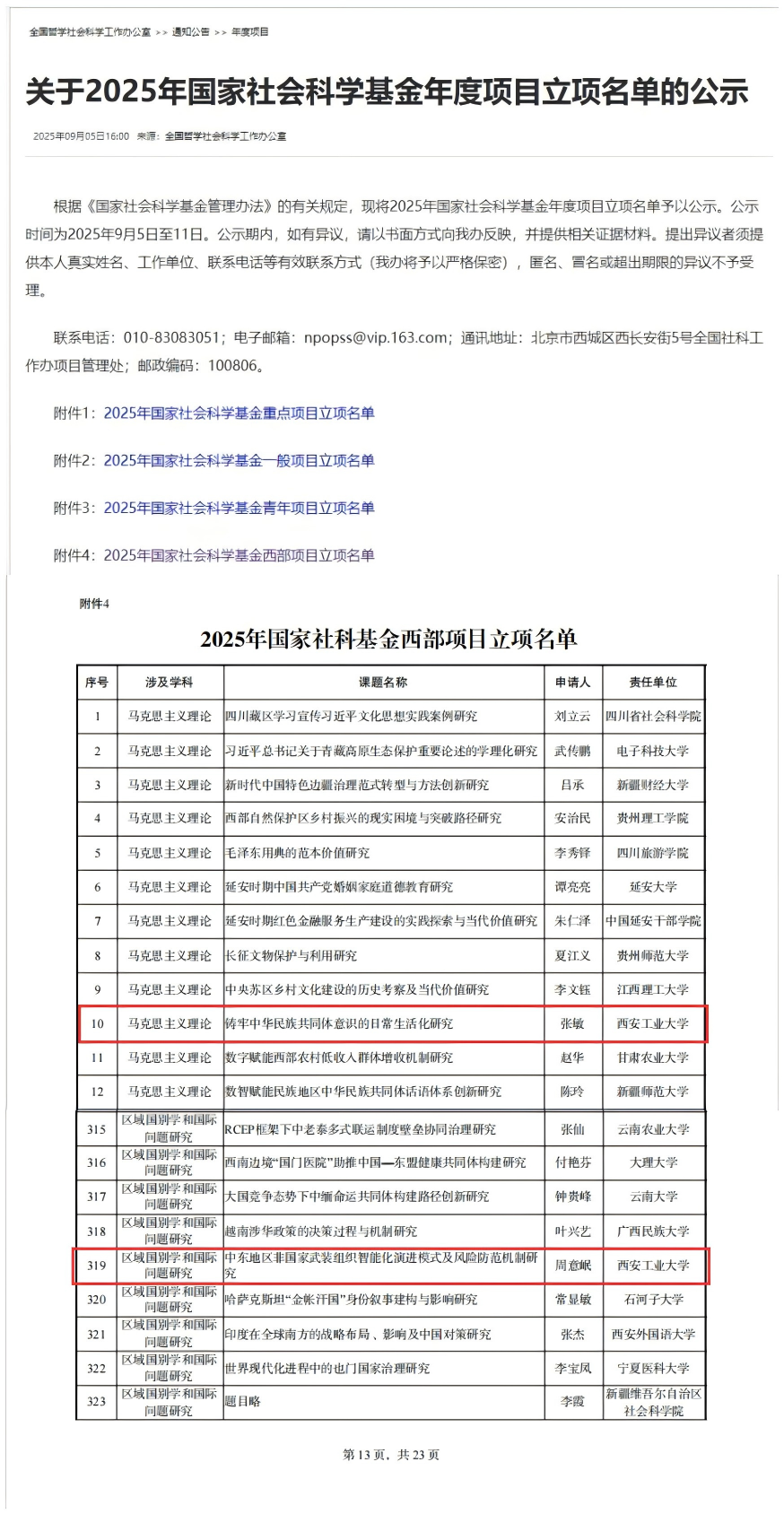 近日,全国哲学社会科学工作办公室发布《关于2025年国家社会科学基金年度项目立项名单的公示》,中文字幕av张敏教授、周意岷副教授喜获国家社会科学基金西部项目立项,并面向全社会公示。