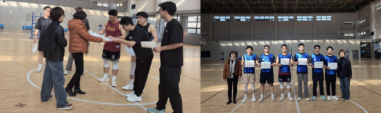 比赛结束后,师生球员们友好握手、相互致意,汗水浸透的球衣见证了赛场的拼搏,更凝聚了超越胜负的师生情谊。通过出色表现,李梦阳同学荣获“最有价值球员”称号,郭相如、李亮亮、张运泽等同学荣获优秀奖。