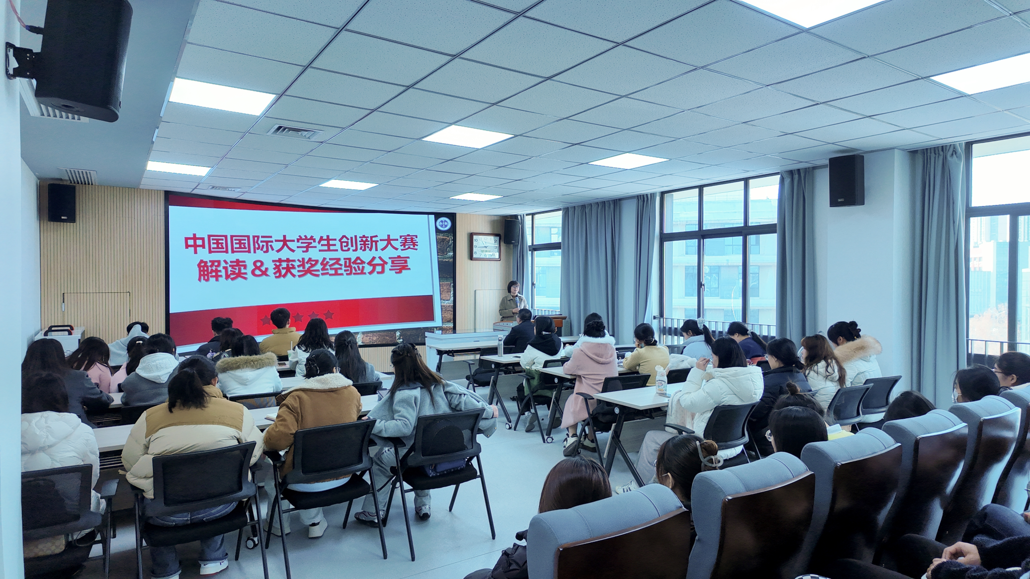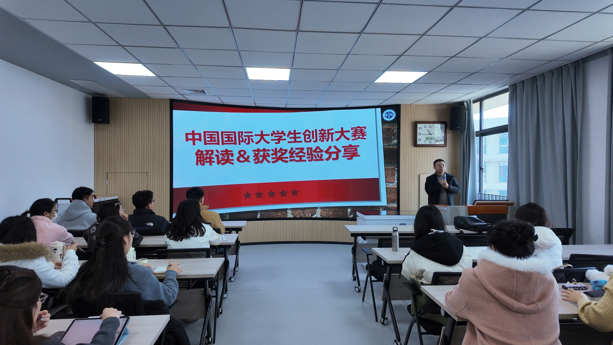 于教7-503举办大学生创新大赛动员培训会。本次会议特邀本科生院张岩波老师进行分享,全体研究生参会。