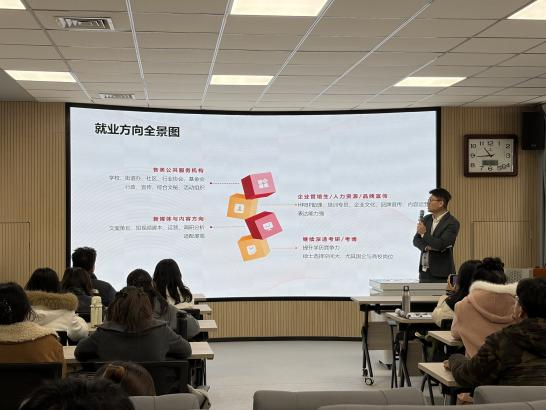 于教7-503教室组织开展研究生就业指导专题宣讲会。全体研究生到场参会,会议特邀行业资深就业指导专家刘艳韬担任主讲嘉宾。